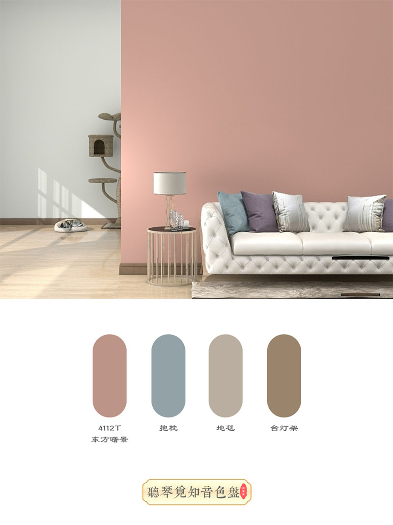 东方曙景4112T,是一种甜而不腻,温暖又轻盈,给人淡淡的、暖暖的色调。它色调偏暖,但又足够淡雅,如同在花丛中沐浴春光一般美好,营造一种平静而舒适的家居氛围。