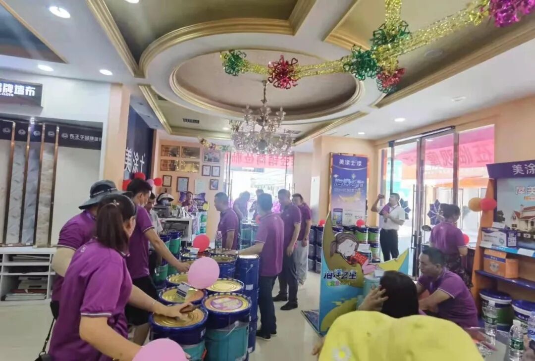 参会客户参观蓬安县千丘塝村的乡村别墅,观摩卡卡湾88从底到面,从内到外的涂装解决方案;随后前往营山艺术漆店面,观摩店面微团会。微团会作为引爆终端活动的利器,现场热烈的签单气氛感染了参会嘉宾,纷纷表示愿意在卡卡湾88的带领下落地微团会。